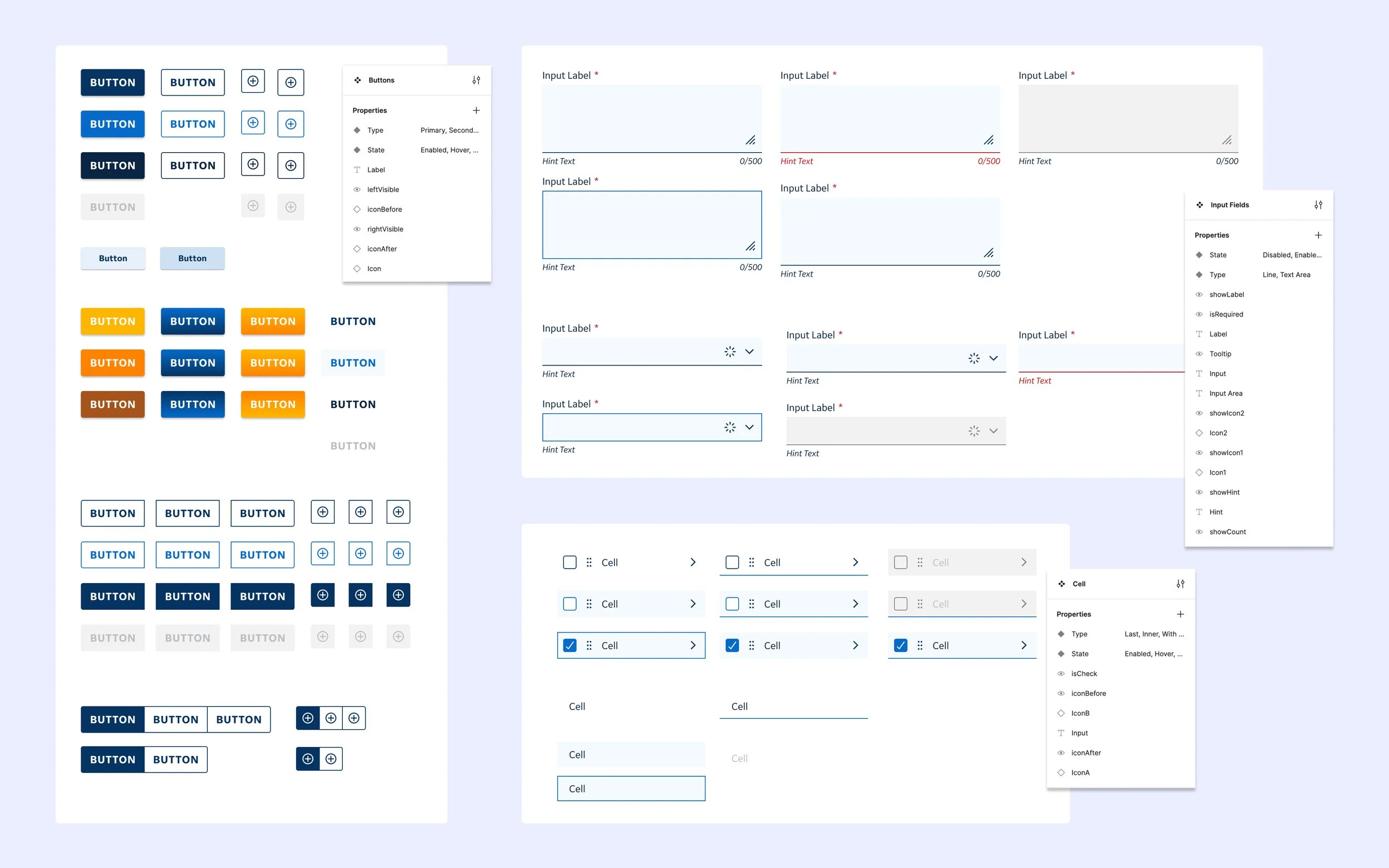 We started rebuilding the most used components first beginning with the buttons, form input fields, and dropdowns. We also analyzed which components were the same but with slight variations; think an input field with help text visible or not visible, or a button with an icon or no icon. This is where we really saw the power of Figma come to life.